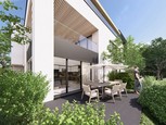 Begane grond met tuin en parkings - Klein nieuw gebouw
